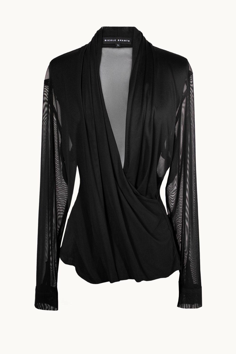 This beautiful mesh blouse features a plunging V-neck and detailed layer look with Long sleeves and button close.